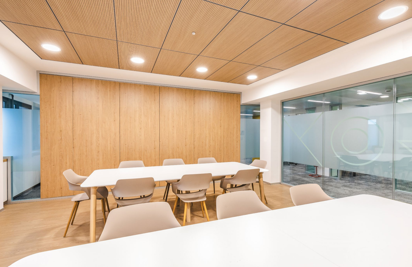 Acoustic performance is a critical component of effective interior modular workplace design systems. Nicos-Mangini Workspace systems can be engineered to provide enhanced sound isolation, supporting privacy, concentration, and occupant well-being. Through thoughtful detailing, integrated acoustic materials, and tested performance ratings, our prefabricated partitions help manage noise in open offices, meeting rooms, and collaborative spaces, creating balanced environments that support both focus and interaction.